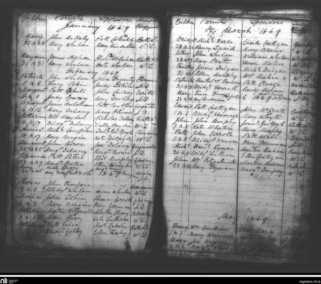 Rathdowney; County of Laois; Diocese of Ossory. Baptisms, Jan. 1869 to May 1869