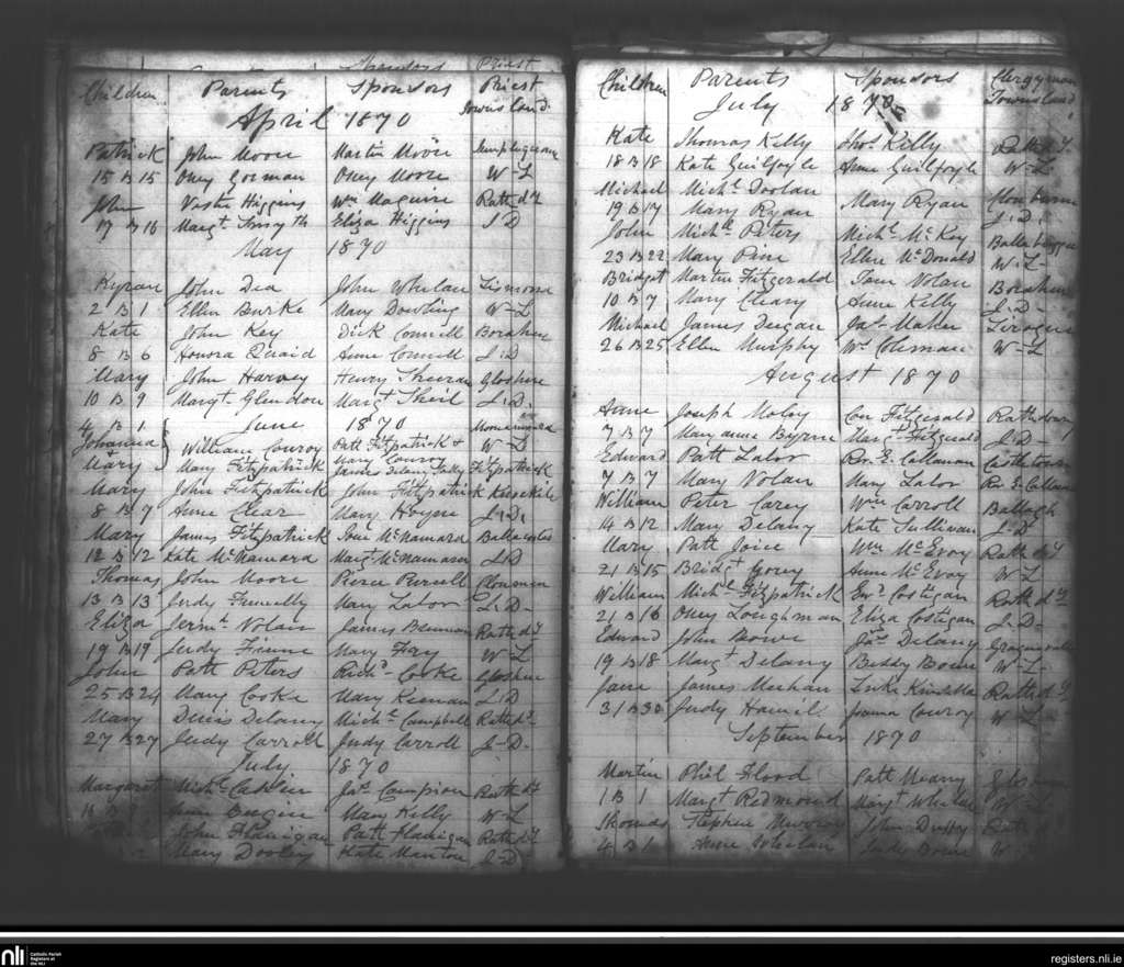 Rathdowney; County of Laois; Diocese of Ossory. Baptisms, Apr. 1870 to Sep. 1870