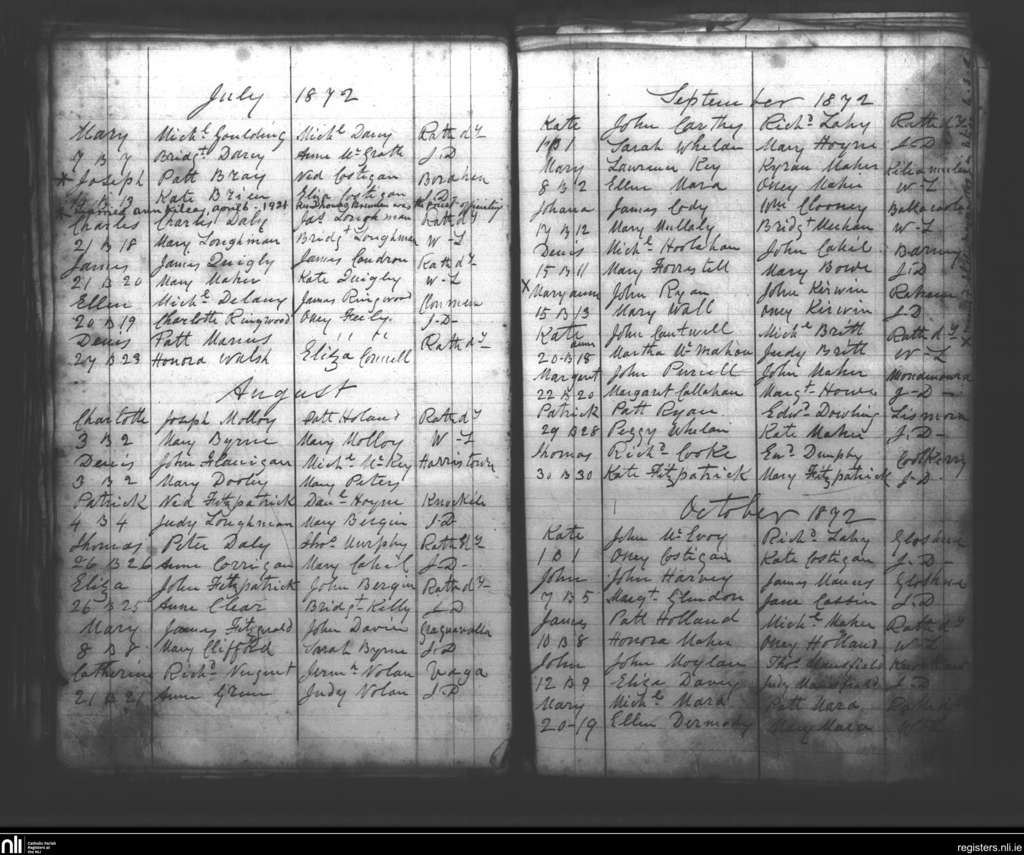 Rathdowney; County of Laois; Diocese of Ossory. Baptisms, July 1872 to Oct. 1872
