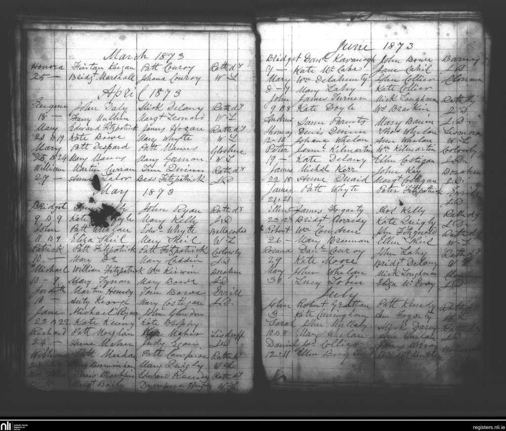 Rathdowney; County of Laois; Diocese of Ossory. Baptisms, Mar. 1873 to July 1873