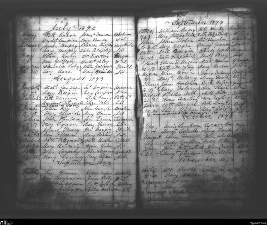 Rathdowney; County of Laois; Diocese of Ossory. Baptisms, July 1873 to Nov. 1873