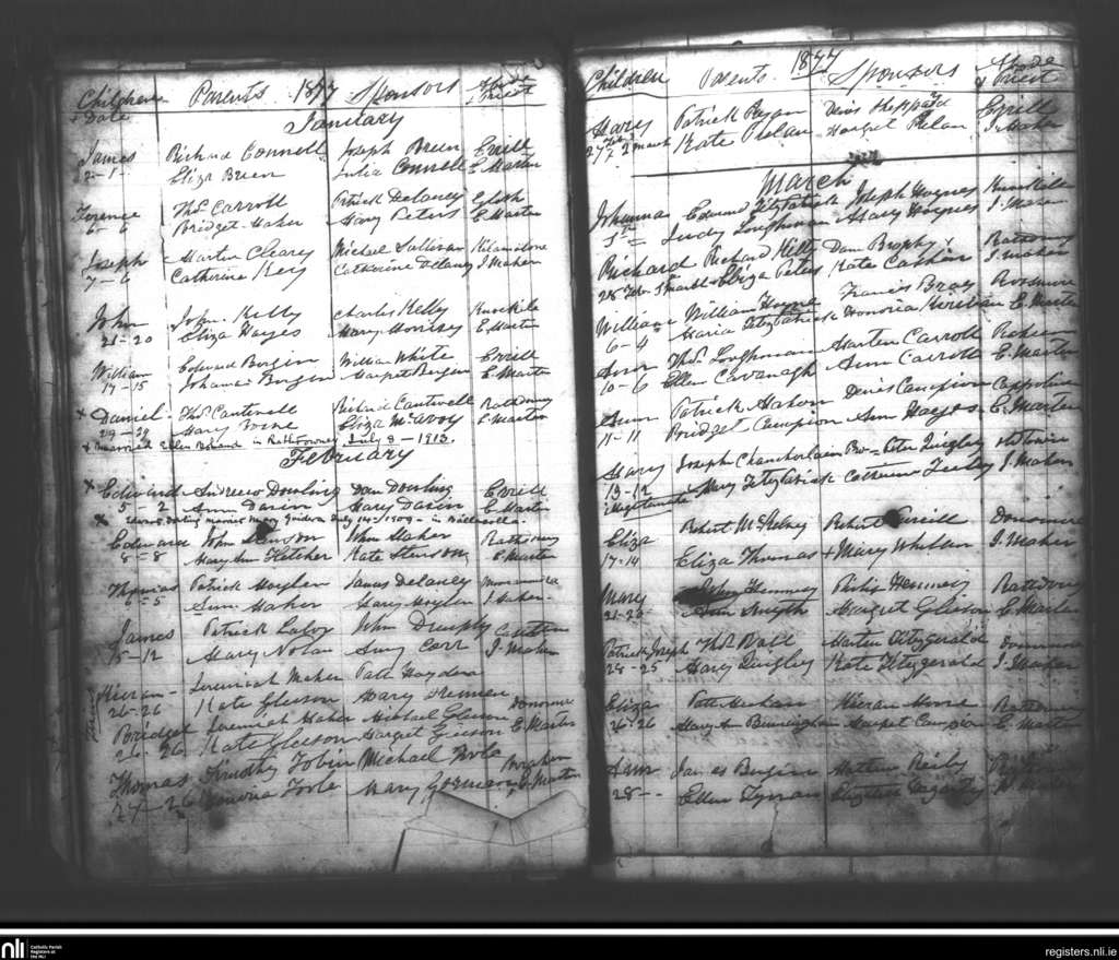 Rathdowney; County of Laois; Diocese of Ossory. Baptisms, Jan. 1877 to Mar. 1877