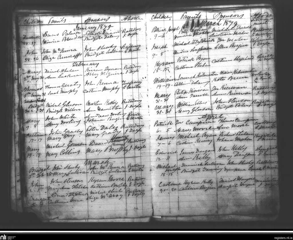 Rathdowney; County of Laois; Diocese of Ossory. Baptisms, Jan. 1879 to Apr. 1879