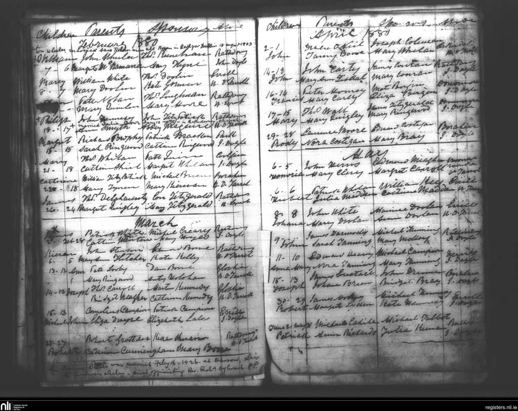 Rathdowney; County of Laois; Diocese of Ossory. Baptisms, Feb. 1880 to June 1880