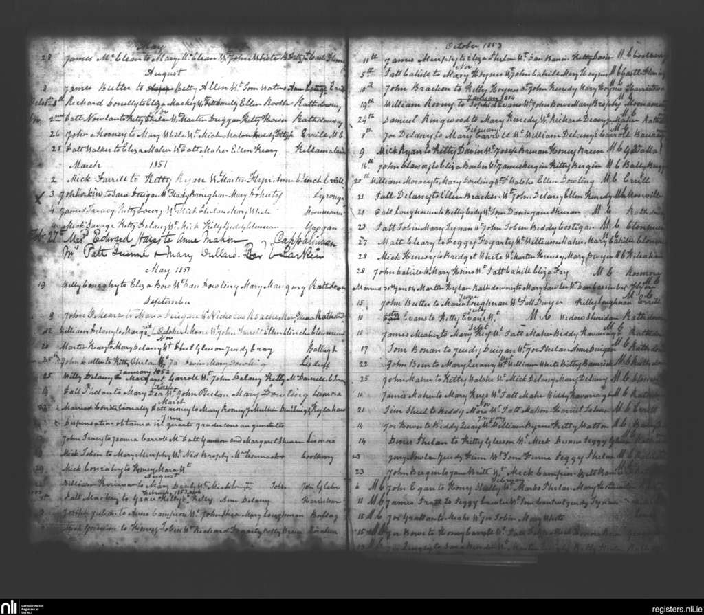 Rathdowney; County of Laois; Diocese of Ossory. Marriages, May 1850 to Feb. 1855