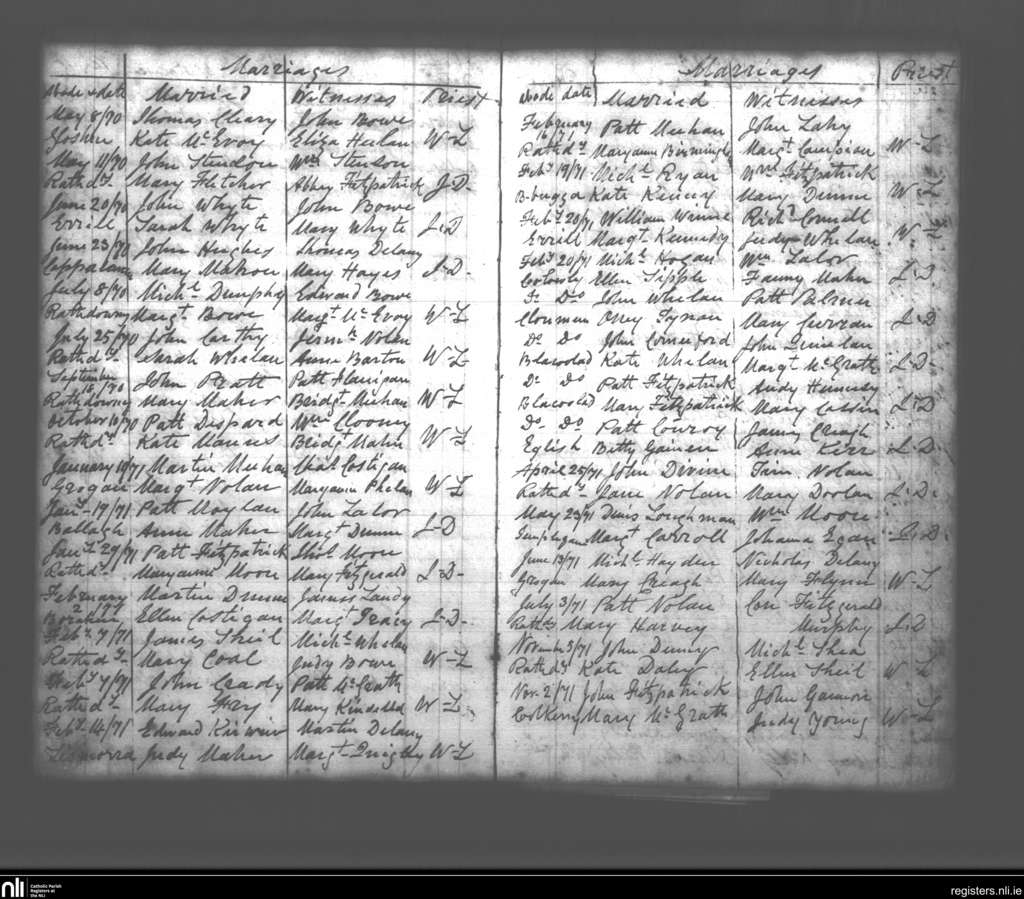 Rathdowney; County of Laois; Diocese of Ossory. Marriages, May 1870 to Nov. 1871