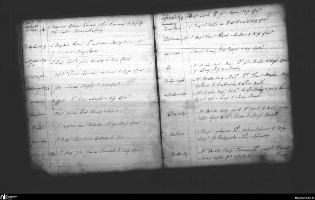 Tullagher; County of Kilkenny; Diocese of Ossory. Baptisms, Aug. 1817 to Sep. 1817