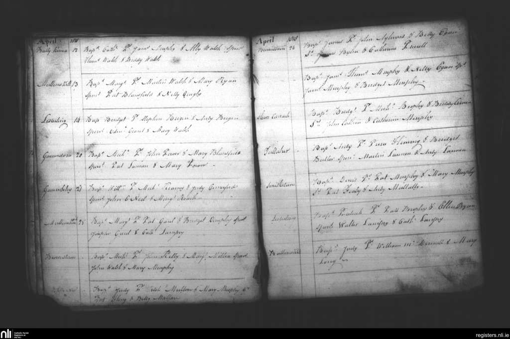 Tullagher; County of Kilkenny; Diocese of Ossory. Baptisms, Apr. 1818