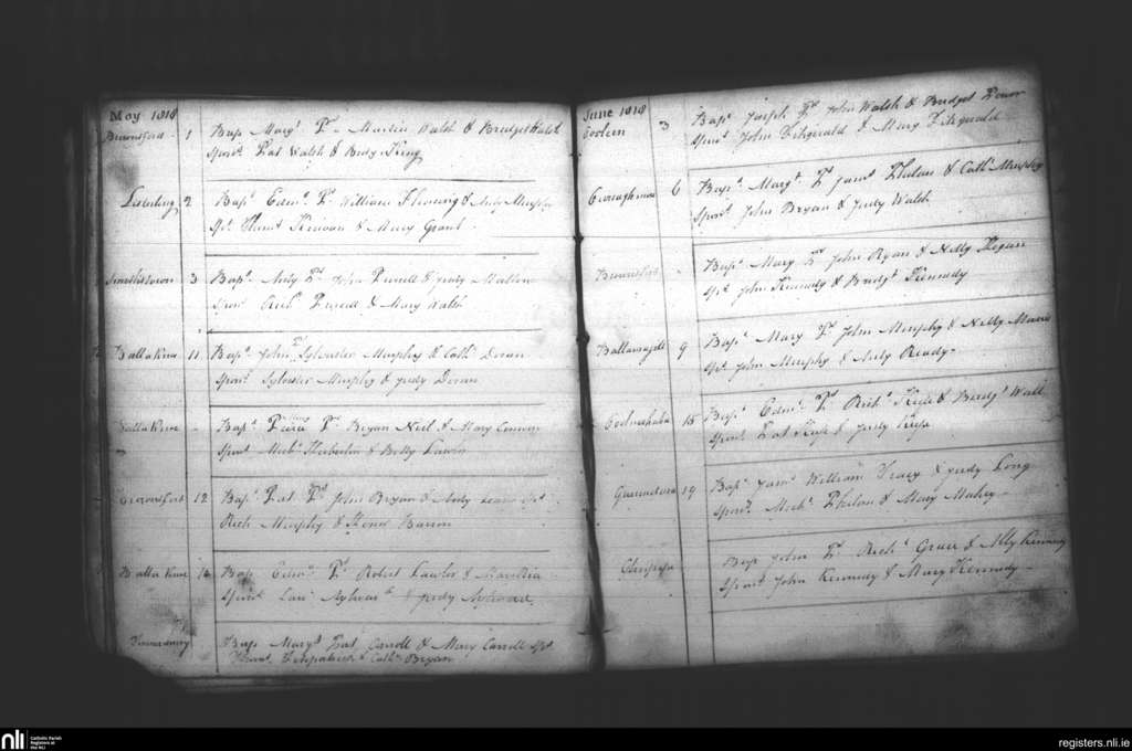 Tullagher; County of Kilkenny; Diocese of Ossory. Baptisms, May 1818 to June 1818