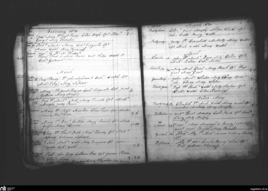 Tullagher; County of Kilkenny; Diocese of Ossory. Baptisms, Feb. 1830 to June 1830