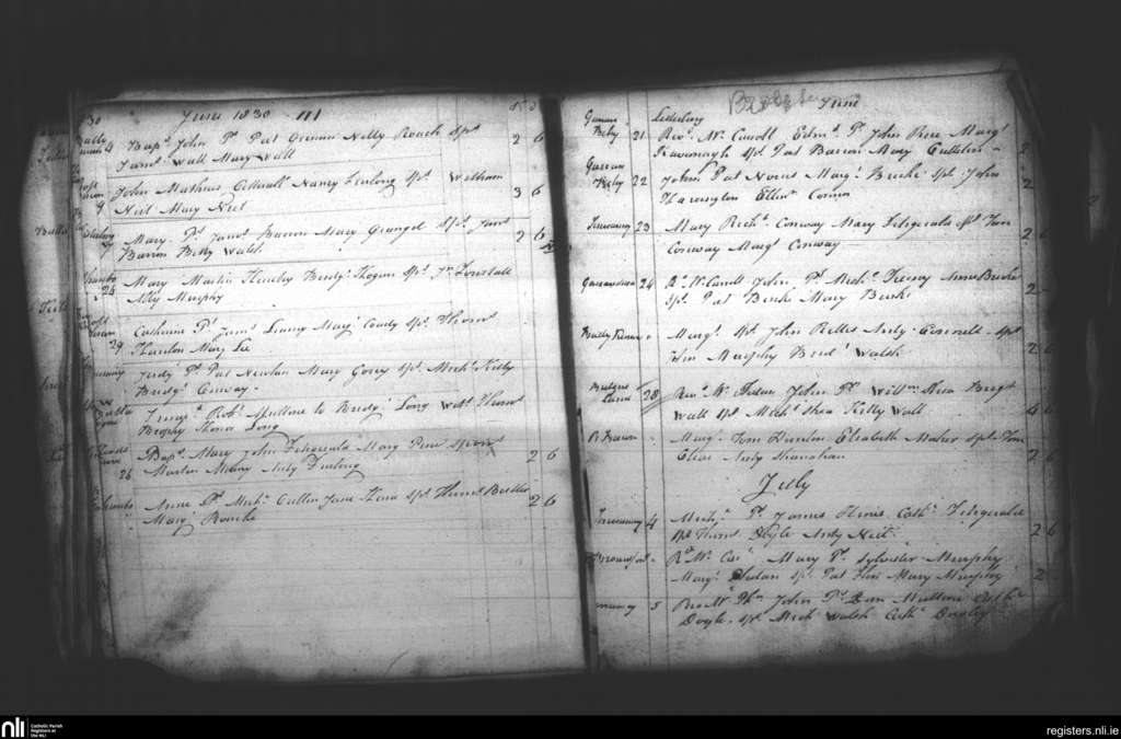 Tullagher; County of Kilkenny; Diocese of Ossory. Baptisms, June 1830 to July 1830