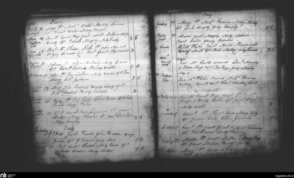 Tullagher; County of Kilkenny; Diocese of Ossory. Baptisms, June 1831 to Aug. 1831