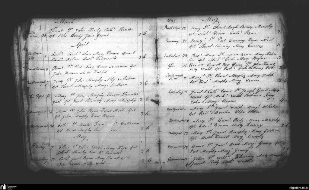 Tullagher; County of Kilkenny; Diocese of Ossory. Baptisms, Mar. 1832 to May 1832