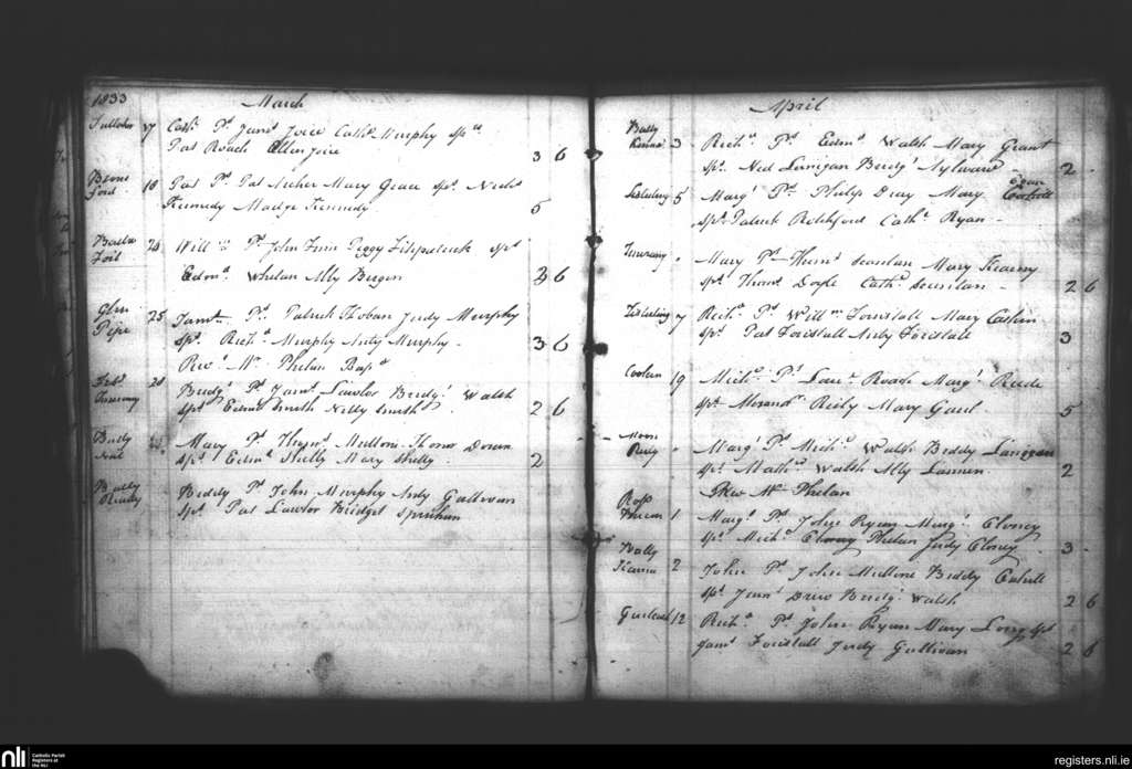 Tullagher; County of Kilkenny; Diocese of Ossory. Baptisms, Mar. 1833 to Apr. 1833