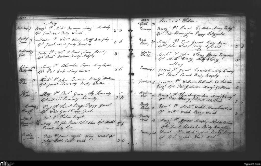 Tullagher; County of Kilkenny; Diocese of Ossory. Baptisms, Apr. 1833 to May 1833