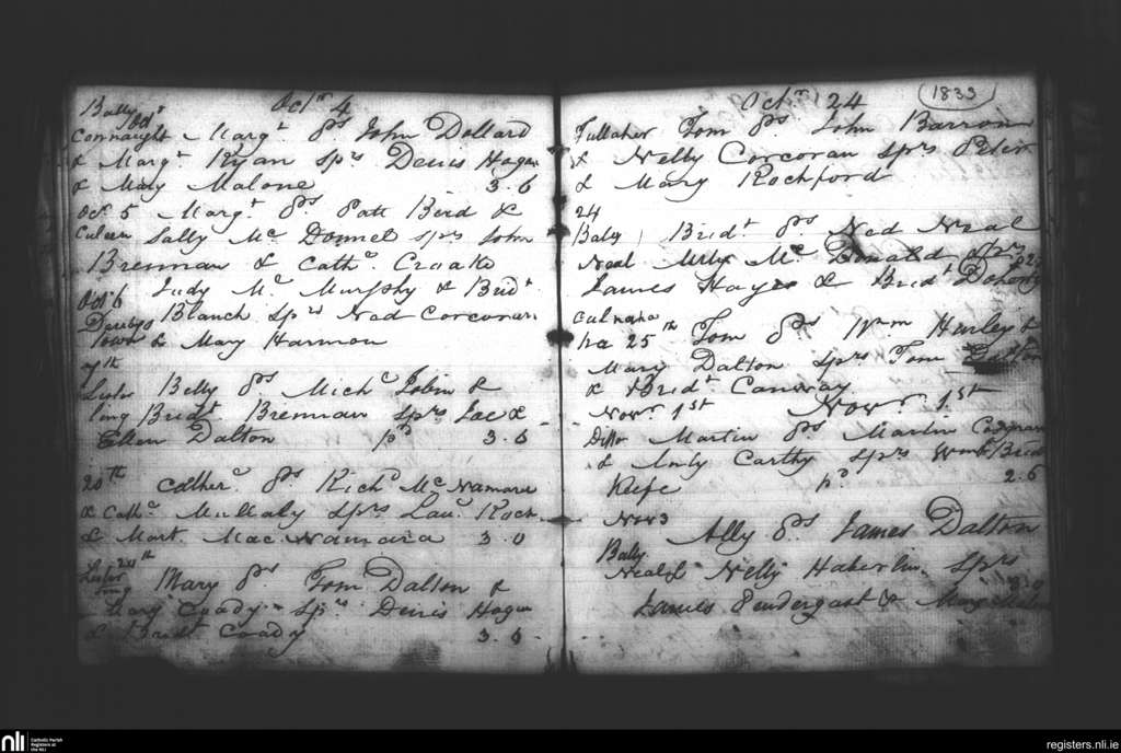 Tullagher; County of Kilkenny; Diocese of Ossory. Baptisms, Oct. 1833 to Nov. 1833