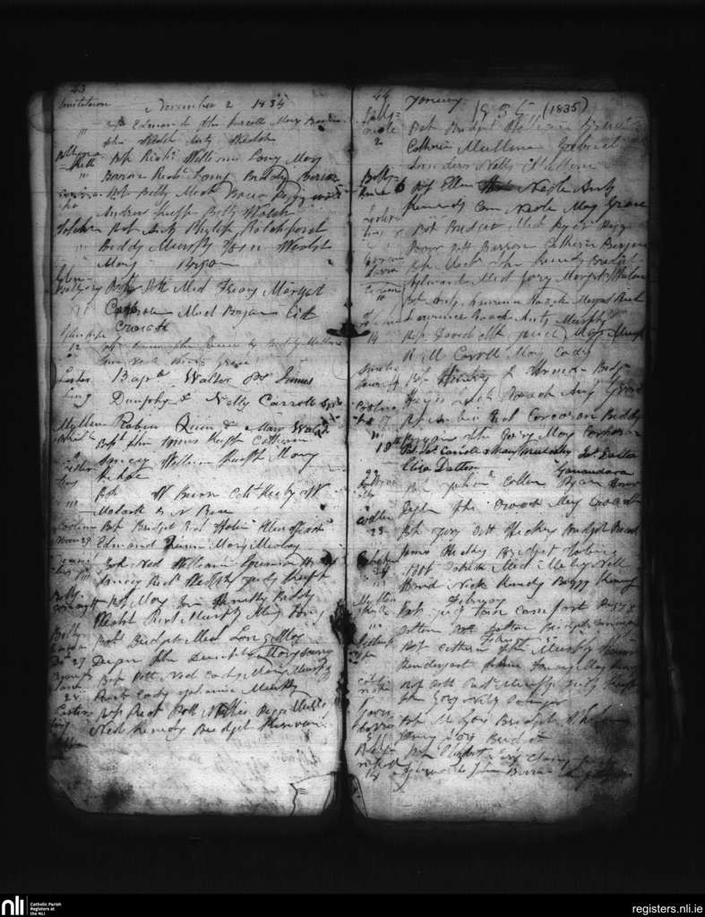Tullagher; County of Kilkenny; Diocese of Ossory. Baptisms, Nov. 1834 to Feb. 1835