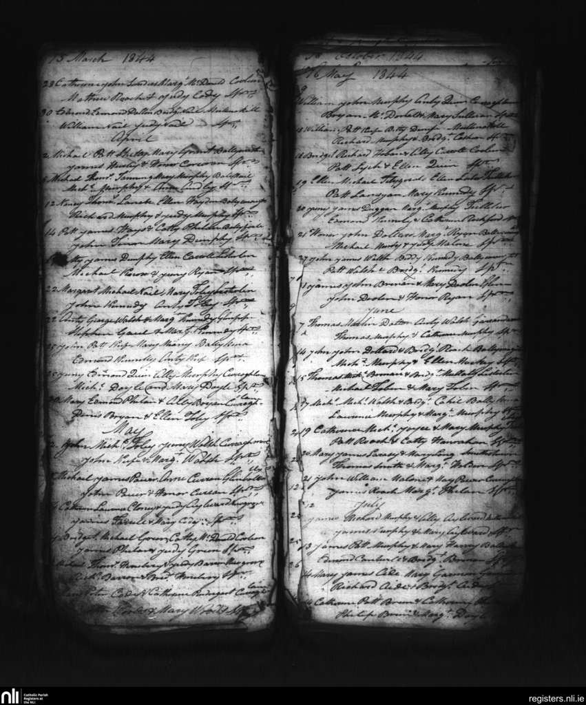 Tullagher; County of Kilkenny; Diocese of Ossory. Baptisms, Mar. 1844 to July 1844