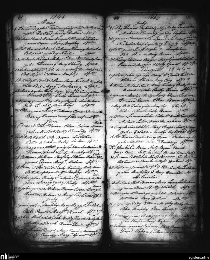 Tullagher; County of Kilkenny; Diocese of Ossory. Baptisms, May 1845 to Sep. 1845