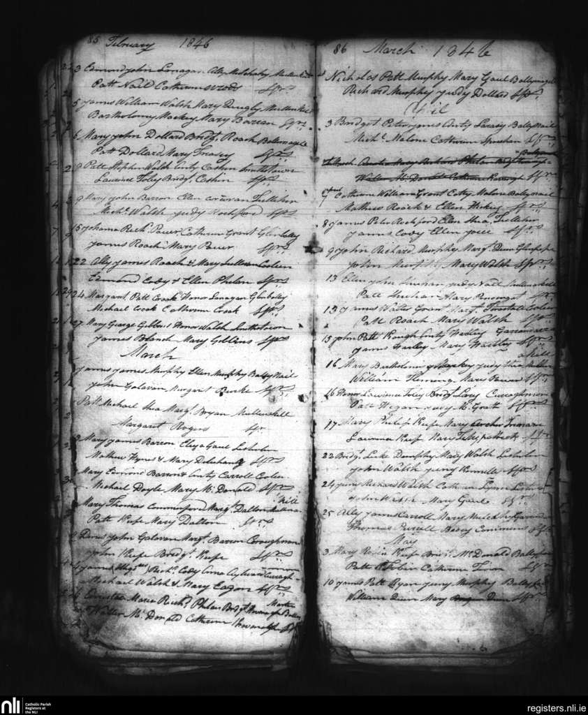 Tullagher; County of Kilkenny; Diocese of Ossory. Baptisms, Feb. 1846 to May 1846