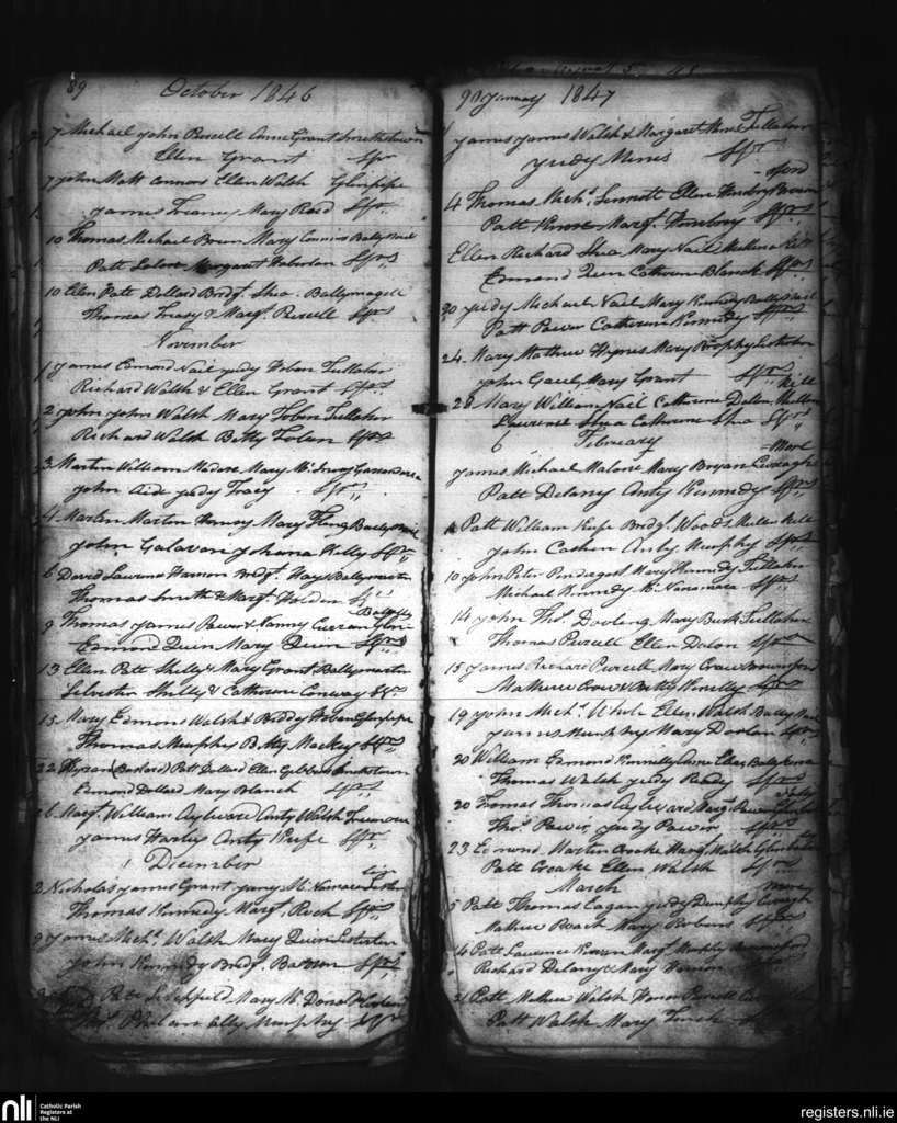 Tullagher; County of Kilkenny; Diocese of Ossory. Baptisms, Oct. 1846 to Mar. 1847