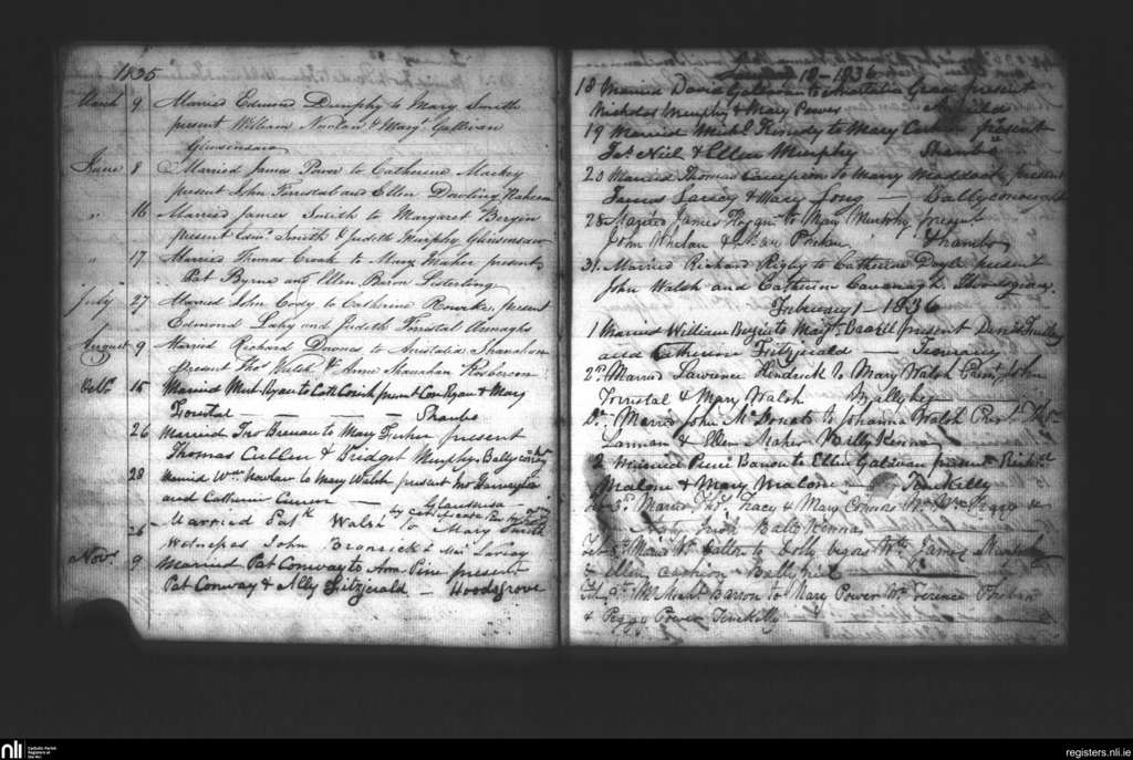 Tullagher; County of Kilkenny; Diocese of Ossory. Marriages, Mar. 1835 to Feb. 1836