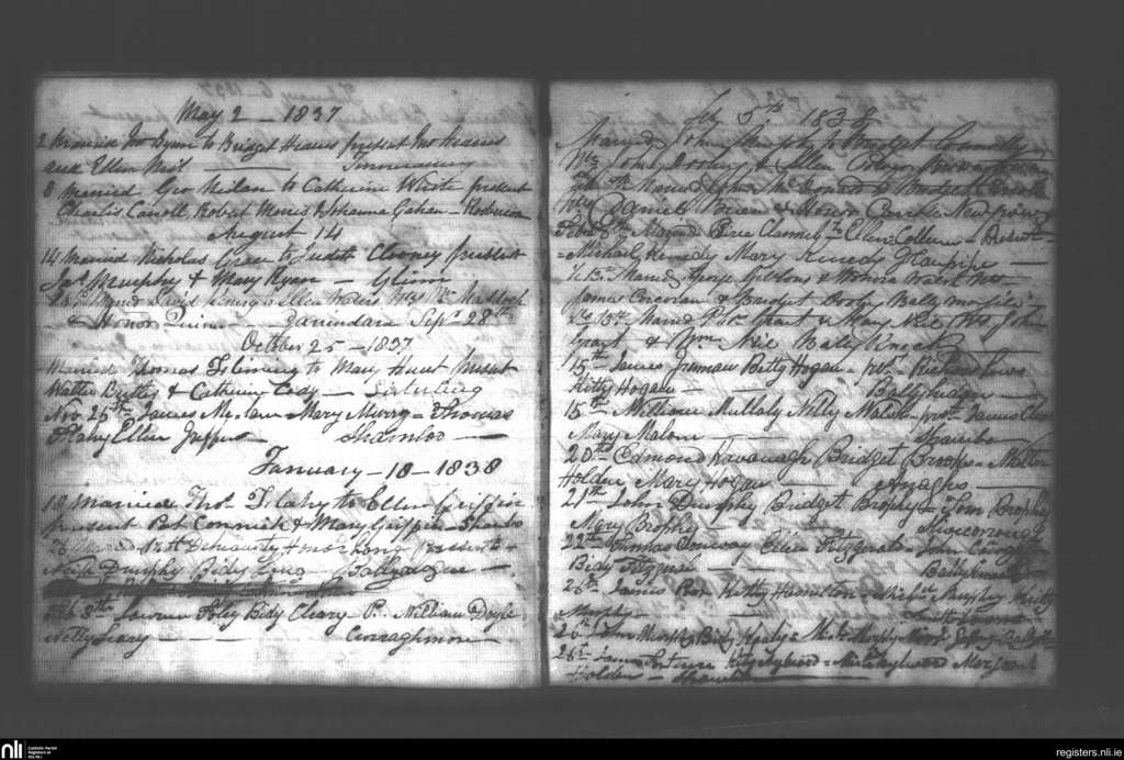 Tullagher; County of Kilkenny; Diocese of Ossory. Marriages, May 1837 to Feb. 1838