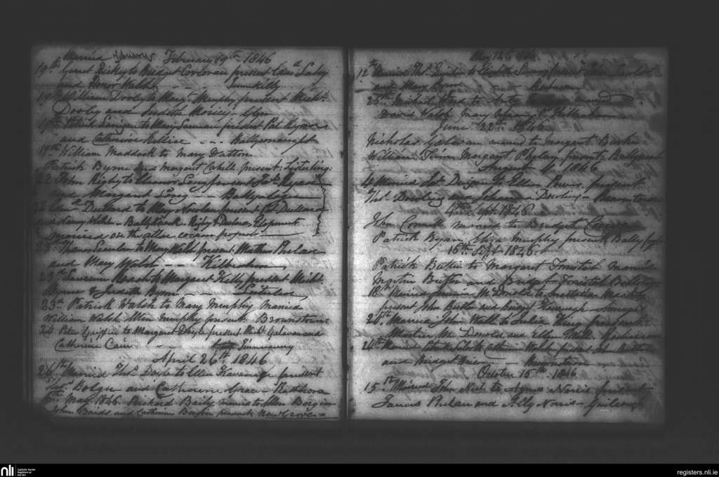 Tullagher; County of Kilkenny; Diocese of Ossory. Marriages, Feb. 1846 to Oct. 1846