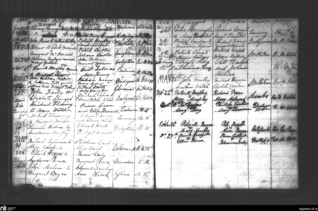 Tullagher; County of Kilkenny; Diocese of Ossory. Marriages, June 1855 to Oct. 1856