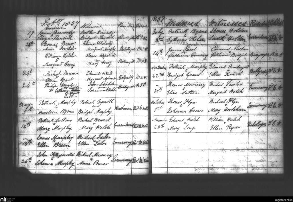 Tullagher; County of Kilkenny; Diocese of Ossory. Marriages, Feb. 1857 to Nov. 1857