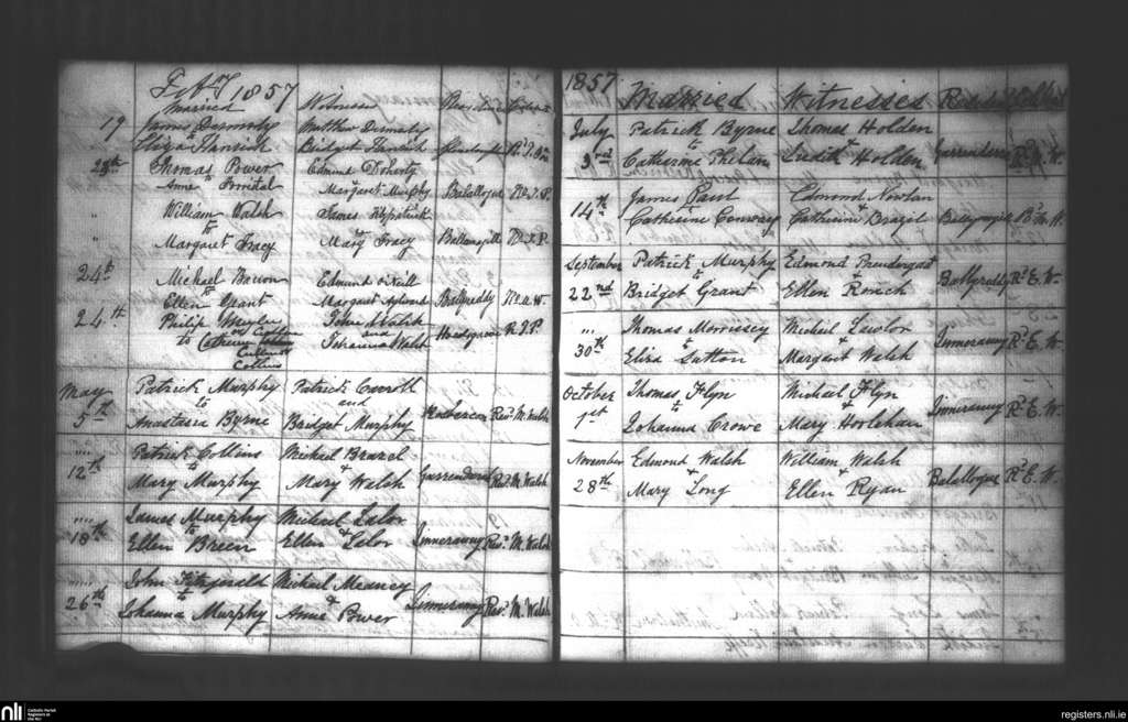 Tullagher; County of Kilkenny; Diocese of Ossory. Marriages, Feb. 1857 to Nov. 1857