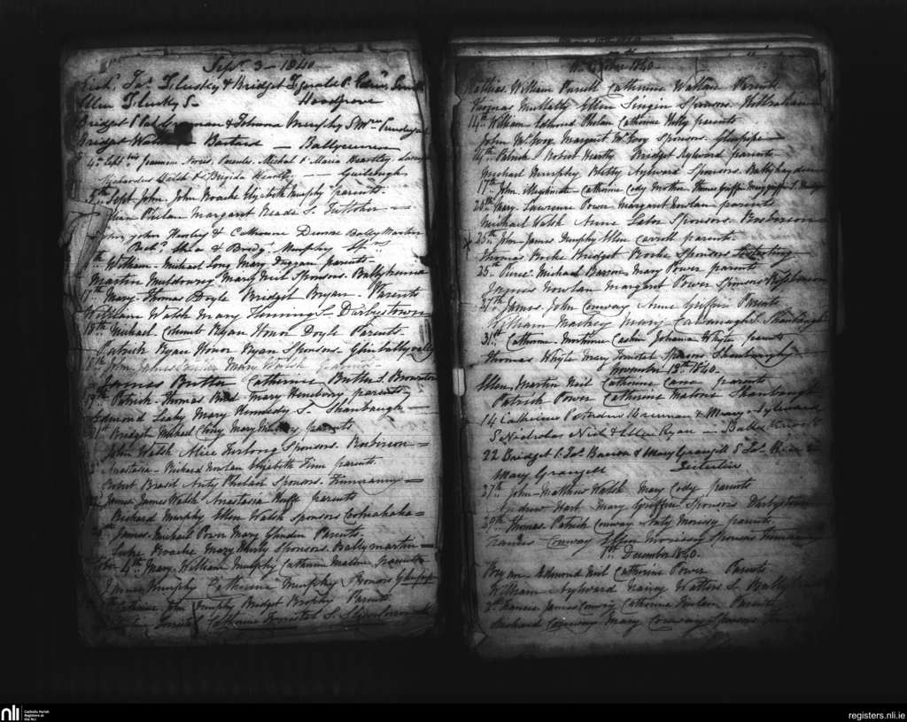 Tullagher; County of Kilkenny; Diocese of Ossory. Baptisms, Sep. 1840 to Dec. 1840