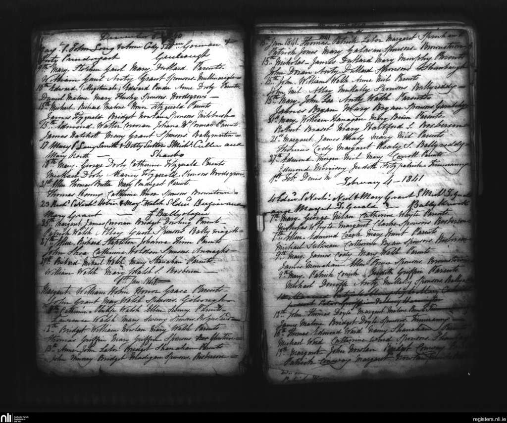 Tullagher; County of Kilkenny; Diocese of Ossory. Baptisms, Dec. 1840 to Jan. 1841