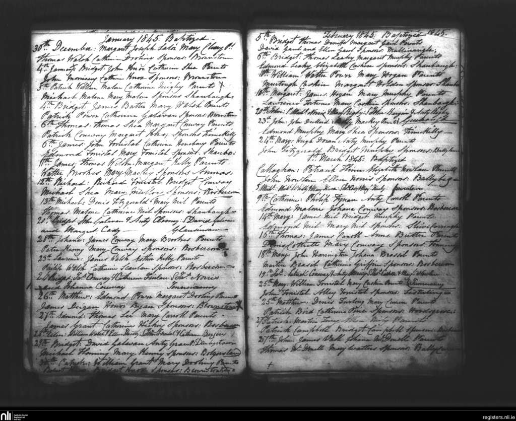 Tullagher; County of Kilkenny; Diocese of Ossory. Baptisms, Jan. 1845 to Mar. 1845