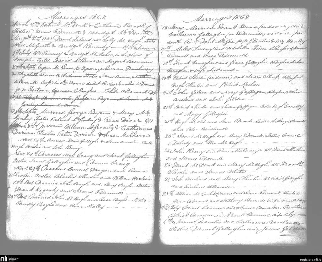 Ardara; County of Donegal; Diocese of Raphoe. Marriages, Mar. 1868 to Feb. 1869