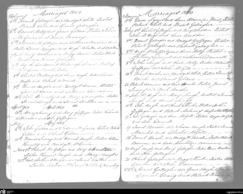 Ardara; County of Donegal; Diocese of Raphoe. Marriages, Feb. 1869 to Feb. 1870