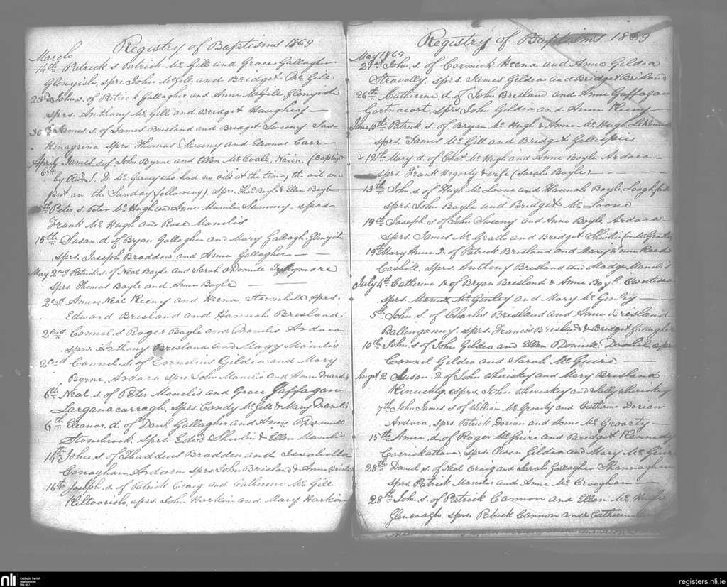 Ardara; County of Donegal; Diocese of Raphoe. Baptisms, Mar. 1869 to Aug. 1869