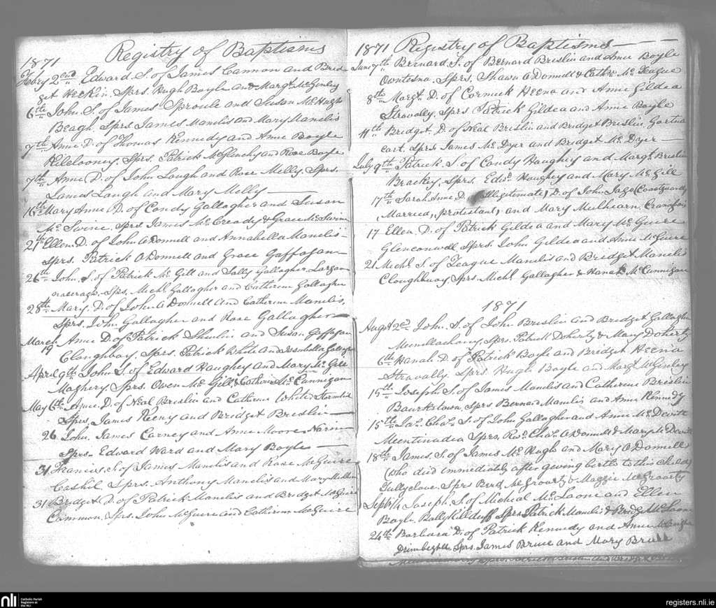 Ardara; County of Donegal; Diocese of Raphoe. Baptisms, Feb. 1871 to Sep. 1871
