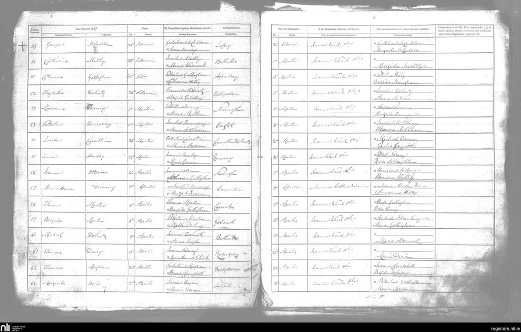 Drumholm; County of Donegal; Diocese of Raphoe. Baptisms, Feb. 1867 to Apr. 1867