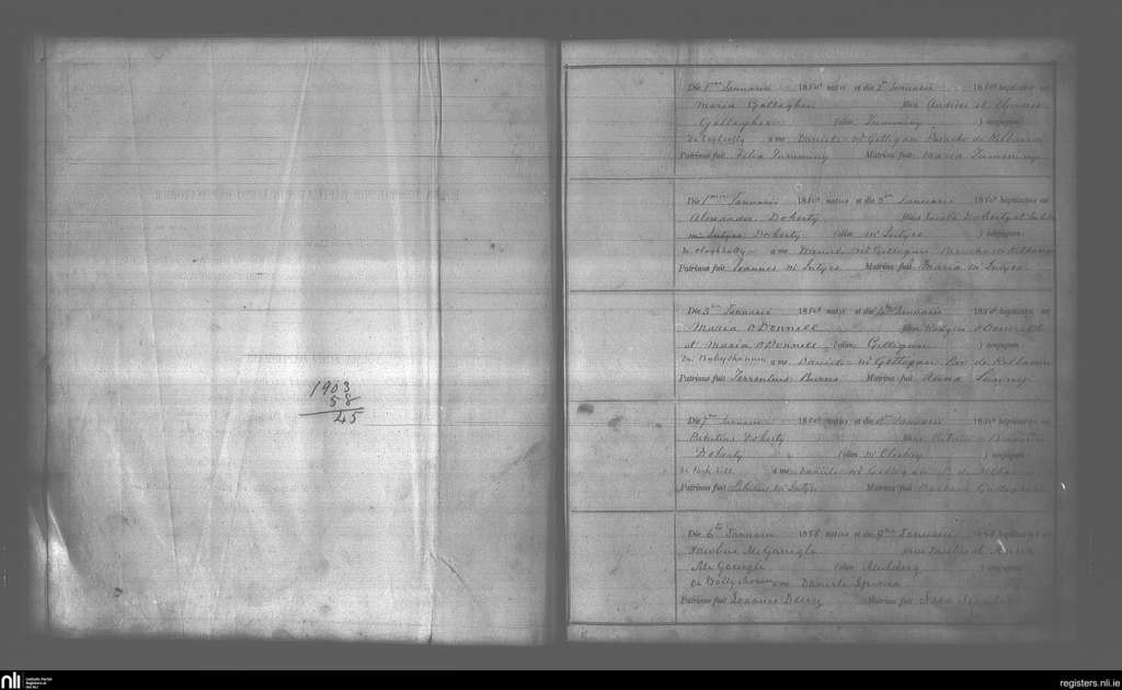 Kilbarron; County of Donegal; Diocese of Raphoe. Baptisms, Jan. 1858