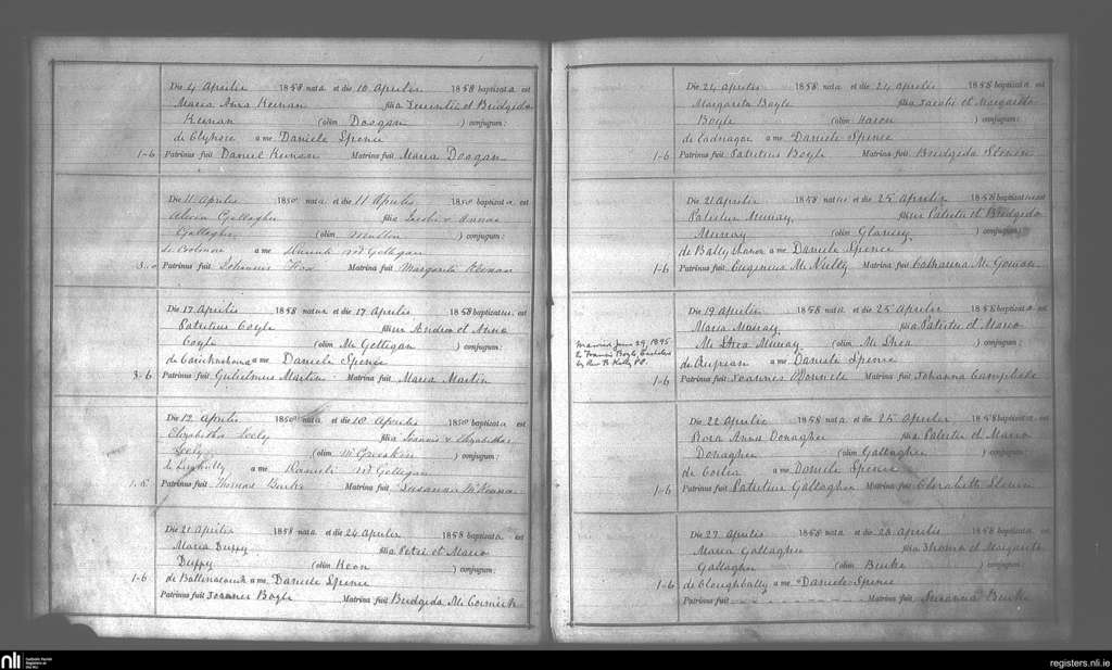 Kilbarron; County of Donegal; Diocese of Raphoe. Baptisms, Apr. 1858