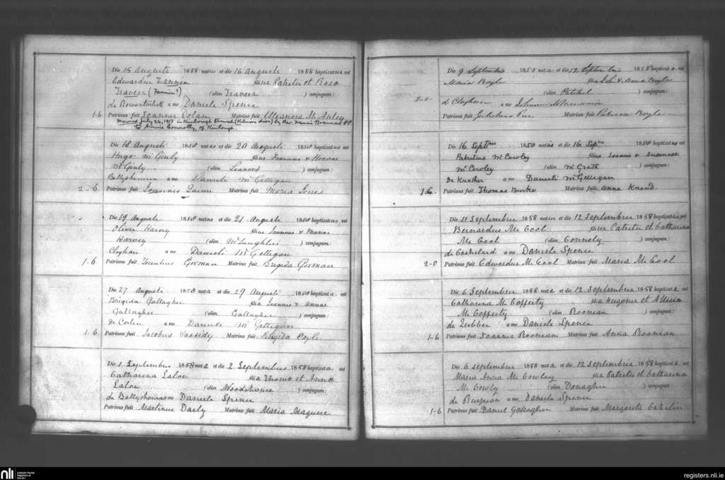 Kilbarron; County of Donegal; Diocese of Raphoe. Baptisms, Aug. 1858 to Sep. 1858