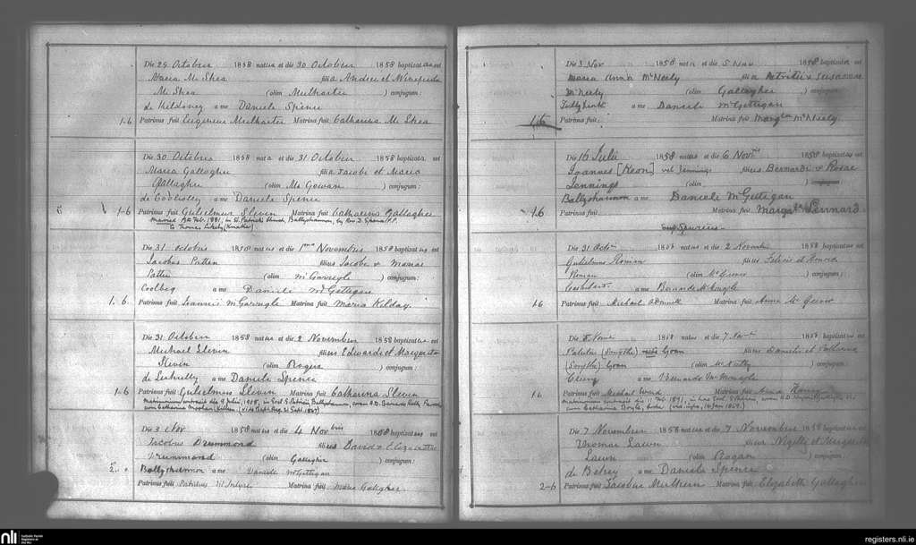 Kilbarron; County of Donegal; Diocese of Raphoe. Baptisms, Oct. 1858 to Nov. 1858