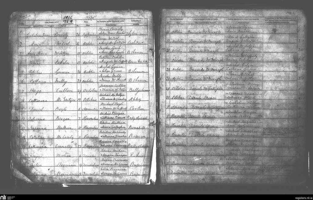 Kilbarron; County of Donegal; Diocese of Raphoe. Baptisms, Oct. 1866 to Dec. 1866
