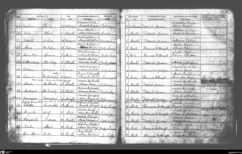 Kilbarron; County of Donegal; Diocese of Raphoe. Baptisms, Feb. 1867 to Mar. 1867