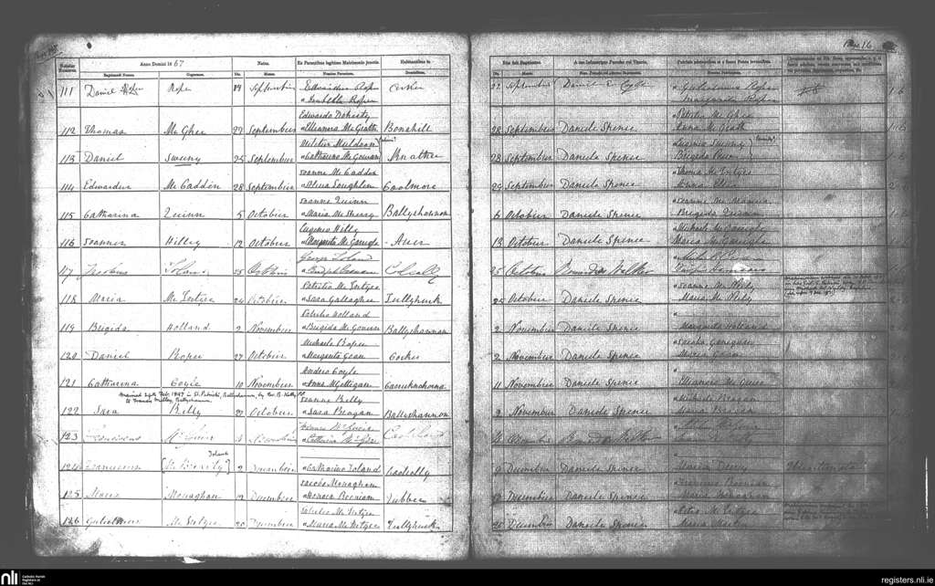 Kilbarron; County of Donegal; Diocese of Raphoe. Baptisms, Sep. 1867 to Dec. 1867