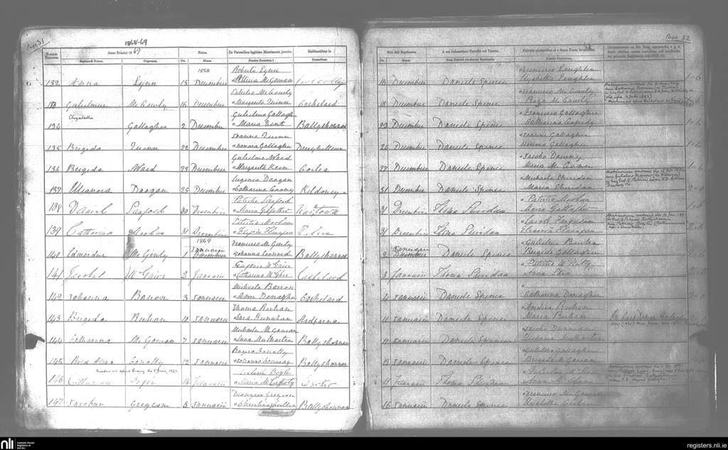 Kilbarron; County of Donegal; Diocese of Raphoe. Baptisms, Dec. 1868 to Jan. 1869