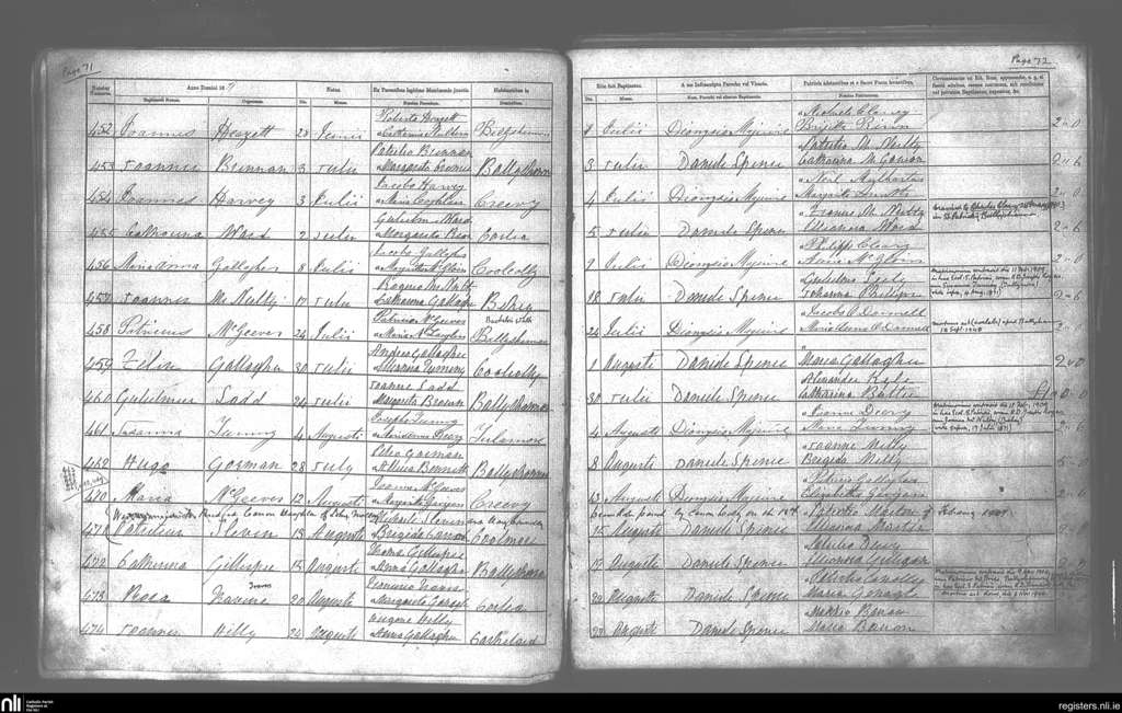 Kilbarron; County of Donegal; Diocese of Raphoe. Baptisms, July 1871 to Aug. 1871