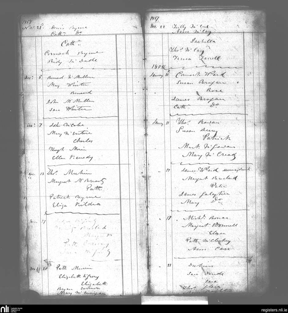 Killaghtee; County of Donegal; Diocese of Raphoe. Baptisms, Nov. 1857 to Jan. 1858