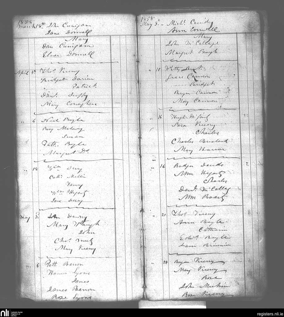 Killaghtee; County of Donegal; Diocese of Raphoe. Baptisms, Mar. 1858 to May 1858